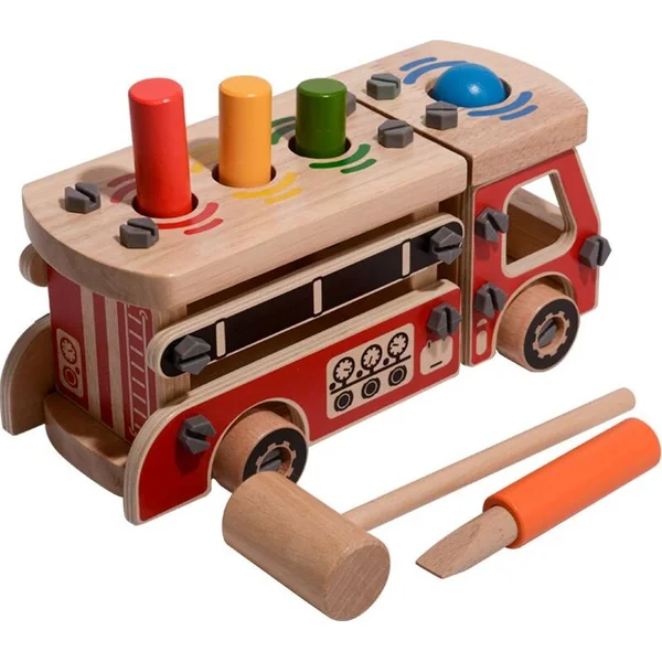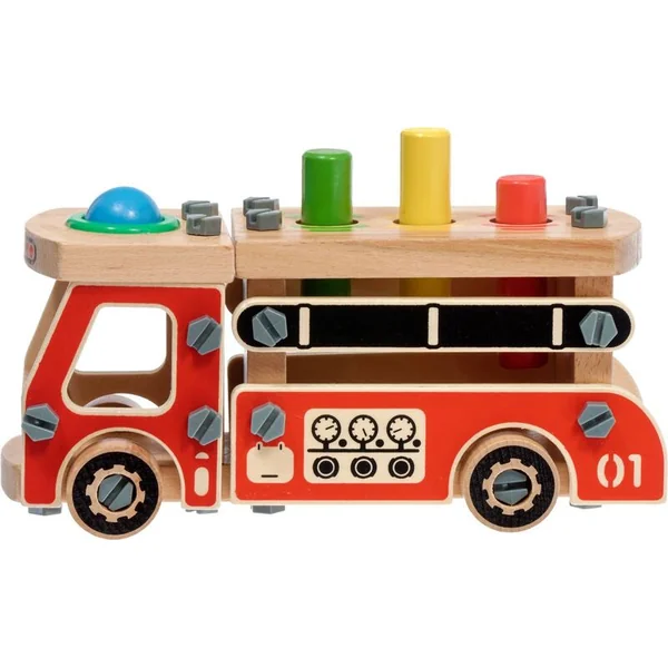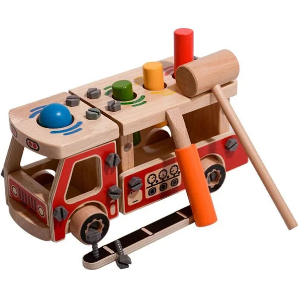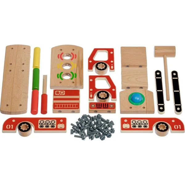 Le kit de construction en bois Pompiers séduira surtout les garçons. Le kit contient de nombreux morceaux en bois, des vis et des outils pour l’assemblage, plus un petit marteau et 4 éléments en bois à enfoncer.