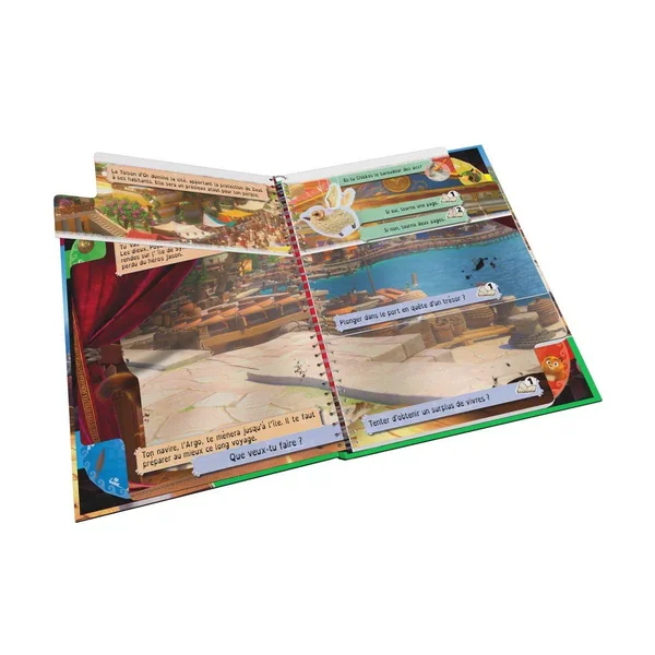 Maintenant, ton aventure peut commencer. Tu vas pouvoir lire ce livre normalement, de gauche à droite, mais rapidement, tu feras face à des choix matérialisés par des pages coupées en trois. Tourne la partie de ton choix et découvre ce qui va se passer. Après plusieurs choix, tu arriveras à la fin de ton aventure… Réussiras-tu à retrouver le casque de Jason ?