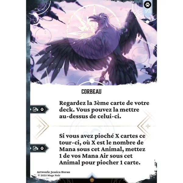 Contenus de chacune des extensions : 52 cartes (2 cartes Animaux différentes, 2 cartes decklists, 48 cartes sorts)