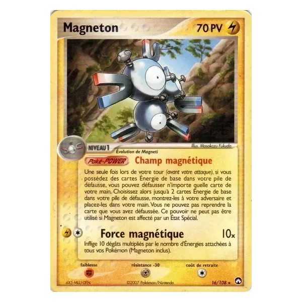 Découvrez Magnéton (pk016), une carte Pokémon de l’extension Gardiens du Pouvoir, provenant du bloc Ex. Idéale pour compléter votre collection, cette carte Rare plaira autant aux collectionneurs qu’aux joueurs.