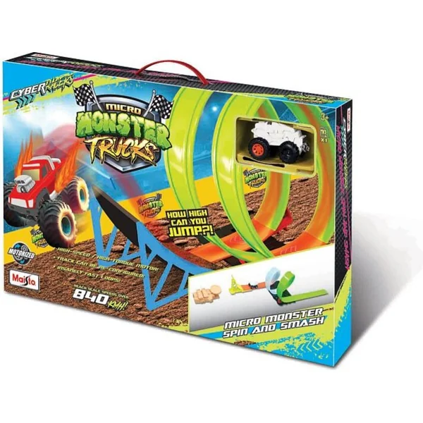 Maisto Cyber Racers Micro Monster Spin & Smash – circuit de course avec une voiture monster truck à remonter garantit un divertissement parfait.