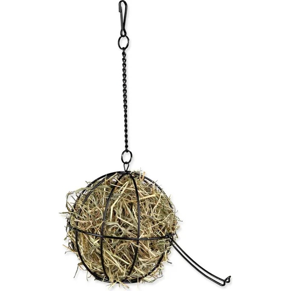 Distributeur suspendu pour rongeurs et oiseaux. L’animal s’occupe pendant l’alimentation. Le foin ne traîne pas librement dans la cage.