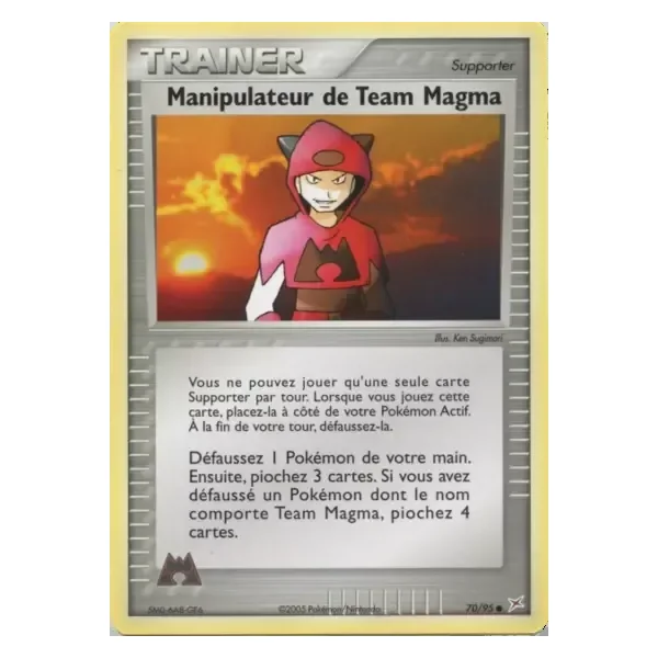 Découvrez Manipulateur de Team Magma (ma070), une carte Pokémon de l’extension Team Magma vs Team Aqua, provenant du bloc Ex. Idéale pour compléter votre collection, cette carte Commune plaira autant aux collectionneurs qu’aux joueurs.