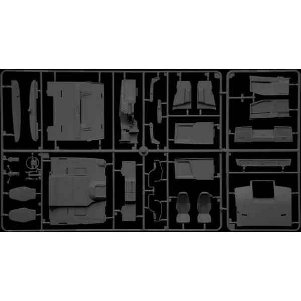 Intérieurs entièrement détaillés – Moteur et châssis entièrement détaillés – Portes du conducteur ouvertes ou fermées – Colle chromée – Pièces avec photodécoupes – Pneus en caoutchouc – Super décalcomanie – Manuel d’utilisation en couleur