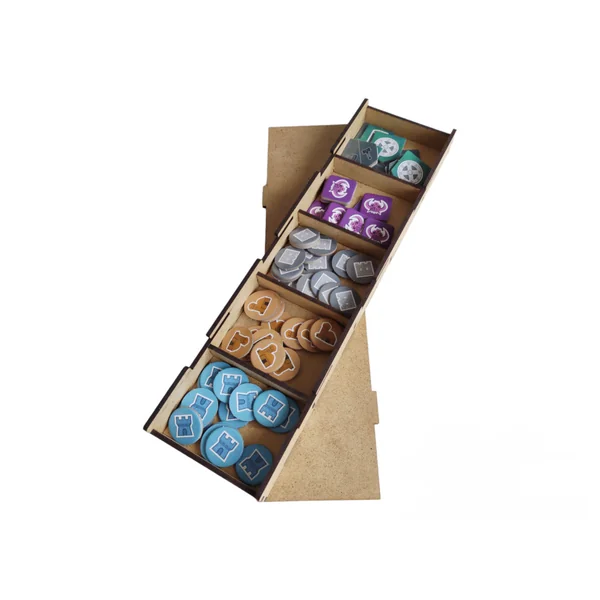 - un compartiment pour les tuiles d’amélioration de drakkar, les jetons de Terreur, les pions de Mur, les pions de Ferme et les pions de Bastion
