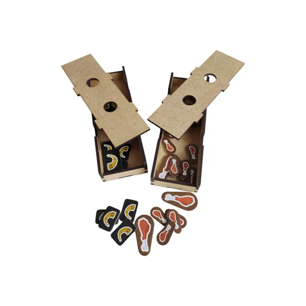 - deux compartiments pour les petits et grands jetons de Nourriture