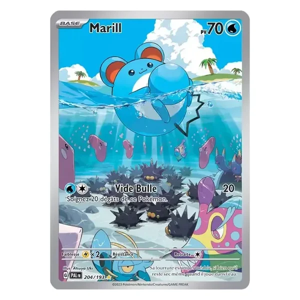 Découvrez Marill (pal204), une carte Pokémon de l’extension Évolutions à Paldéa, provenant du bloc Écarlate & Violet. Idéale pour compléter votre collection, cette carte Illustration Rare plaira autant aux collectionneurs qu’aux joueurs.