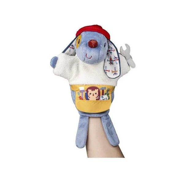 Jules le bricoleur marionnette est toujours prêt à aider ses amis avec une clé de douze à la main ! Il permet de raconter des histoires chaleureuses et pleine de douceur.