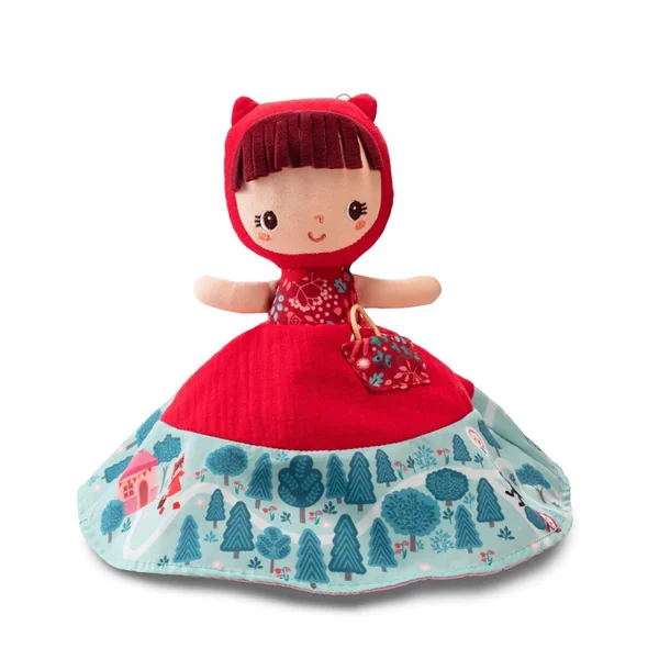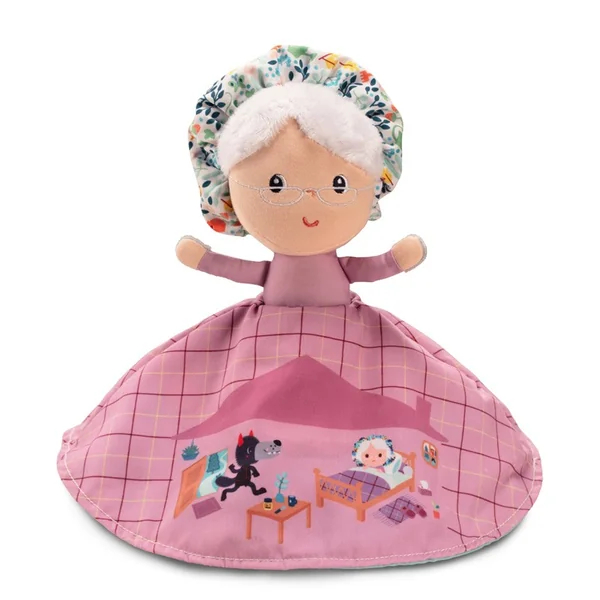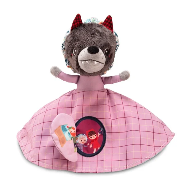Cette marionnette réversible petit chaperon rouge permet de conter cette fantastique histoire en suivant les dessins sur les robes successives de la petite fille et de mère-grand. En effet, l’intégralité du conte peut être suivie sur les tissus au fur et à mesure de son déroulé. Durant celle-ci, la marionnette devra alors être retournée pour révéler mère-grand ou le loup suivant l’avancée dans l’histoire. Emerveillez vos enfants en leur contant cette belle histoire. Ils sauront ensuite s’en amuser pour vous raconter à leur tour Le Petit Chaperon rouge.