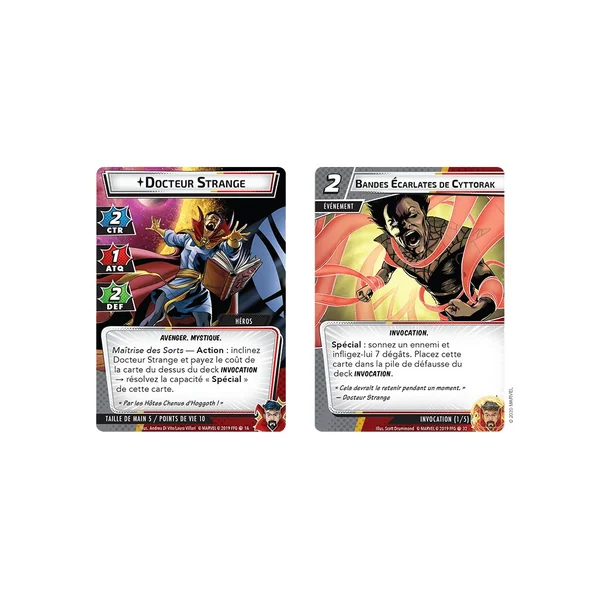 Docteur Strange peut compter sur des puissances qui se trouvent au-delà de notre compréhension, et elles sont représentées dans le jeu par un deck d’Invocation unique. En tant que défenseur de notre dimension, le Paquet Héros Docteur Strange offre un deck pré-construit utilisant l’affinité Protection pour être certain que votre équipe de héros puisse se défendre contre n’importe quelle attaque, dans ce royaume mortel ou au-delà !
