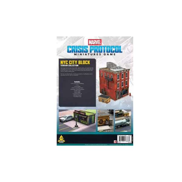 Marvel Crisis Protocol : NYC City Block – Terrain Collection est une extension pour 2 joueurs dès 14 ans pour des parties d’environ 90 minutes, édité par Atomic Mass Games.