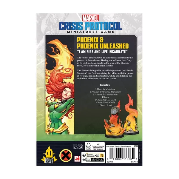 Marvel Crisis Protocol : Phoenix & Phoenix Unleashed – Character Pack est une extension jouable pour 2 joueurs dès 14 ans pour des parties d’environ 90 minutes, édité par Atomic Mass Games.