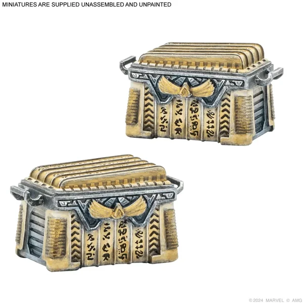Marvel Crisis Protocol : Shrine to En Sabah Nur – Terrain Pack : En Sabah Nur est le nom original du mutant impitoyable connu sous le nom d’Apocalypse. Élevé par un guerrier nomade dans les déserts impitoyables de l’Égypte antique, il a survécu à la famine et aux épreuves pour forger ses compétences. Il s’est réveillé au fil des siècles pour devenir toujours plus puissant, utilisant une technologie qui n’est pas de ce monde pour augmenter ses propres pouvoirs naturels. N’étant pas un être qui souffrira de faiblesse ou de pitié, il est venu conquérir l’Amérique du Nord et a des vues sur le monde entier. Promouvant une philosophie basée sur la survie du plus fort, il croit que l’espèce mutante devrait être l’espèce dominante sur Terre et est implacable dans la traque des mutants plus faibles et de l’humanité en général. Il favorise une atmosphère impitoyable chez ceux qui le suivent et exige ce qu’il considère comme son dû de ceux qui suivent ses idéaux, ce qui n’est jamais plus évident que dans les sanctuaires érigés à son image.
