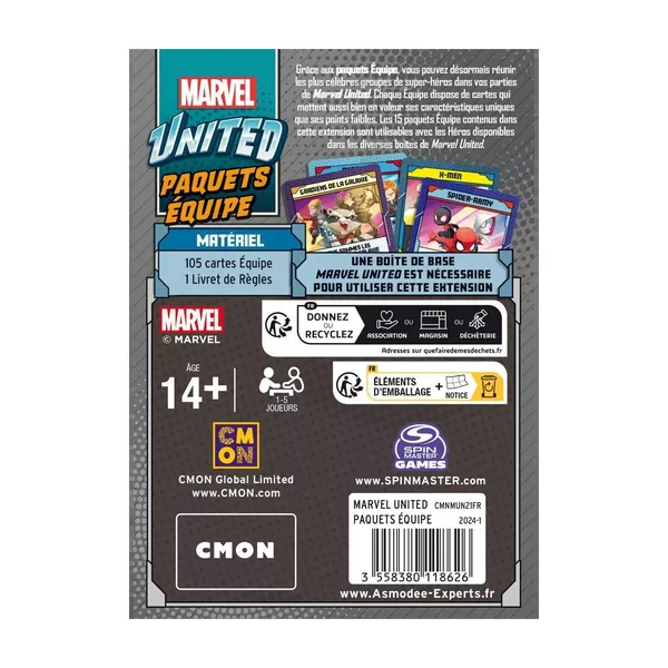 Marvel United – Multiverse : Team Decks est une extension jouable de 1 à 5 joueurs dès 14 ans pour des parties d’environ 40 minutes, édité par CMON.