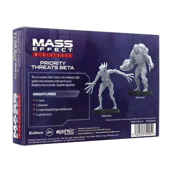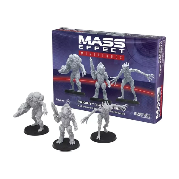 Mass Effect : Prioriy Threats Beta : Une série de figurines magnifiquement sculptées, à l’échelle 32mm. Elles sont à assembler et non peintes, mais sont fournies avec des socles en plastique de 30 mm. Conçues pour s’adapter aux ennemis du jeu de plateau, ces figurines sont des améliorations indispensables pour les fans et collectionneurs de Mass Effect, ainsi que pour les joueurs du jeu de plateau.