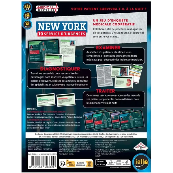 Medical Mysteries – New York Services d’urgences est un jeu d’enquête médical coopératif où vous devrez collabororer pour pronostiquer le diagnostique de vos patients.