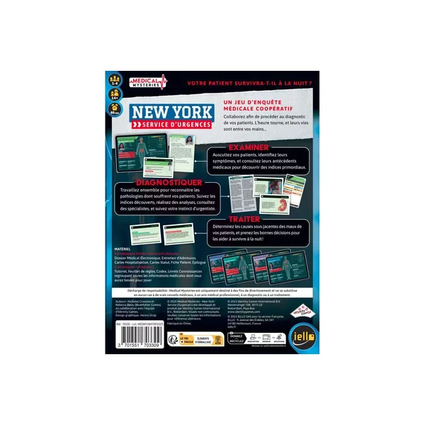 Medical Mysteries est un jeu d’enquête médicale coopératif jouable de 1 à 4 joueurs, dès 14 ans pour des parties d’environ 60 minutes, édité par Iello.
