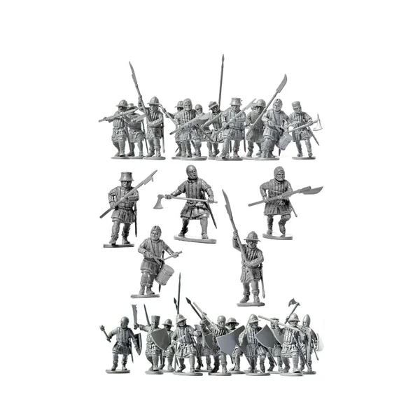Ce set contient un ensemble de 32 figurines représentant des sergents médiévaux à pied de la fin du XIIe siècle à la fin du XIIIe siècle. Ce set propose des poses impressionnantes et une grande variété d’armes, de têtes et de costumes.