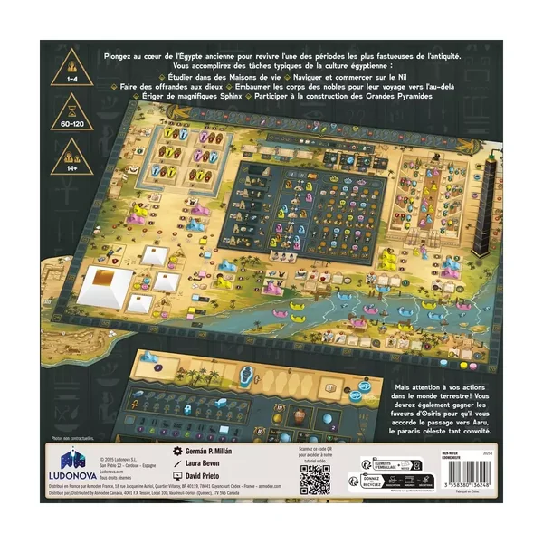 Men-Nefer est un jeu de société expert jouable de 1 à 4 joueurs, dès 14 ans pour des parties d’environ 90 minutes, édité par Ludonova.