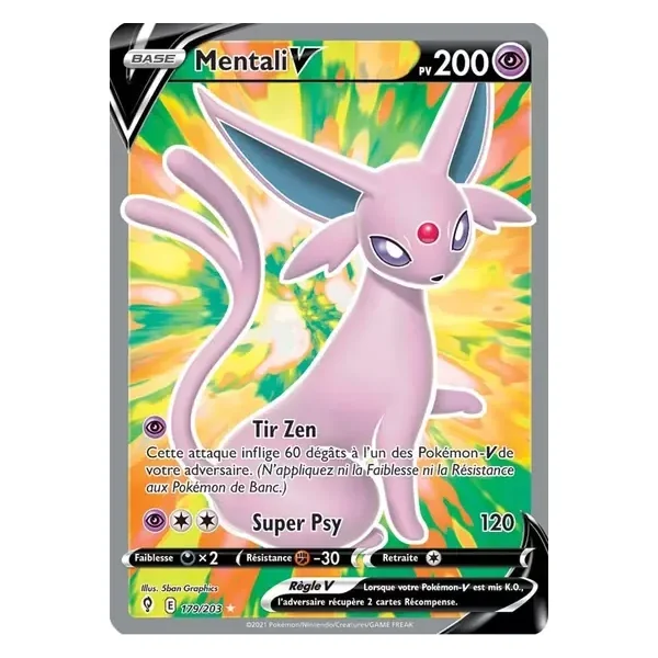 Découvrez Mentali (evs179), une carte Pokémon de l’extension Évolution Céleste, provenant du bloc Épée & Bouclier. Idéale pour compléter votre collection, cette carte Ultra Rare plaira autant aux collectionneurs qu’aux joueurs.