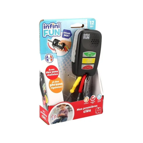 Votre tout-petit a enfin ses clés pour faire comme les grands ! Surprenez-le à vous imiter à ouvrir la porte ou à démarrer la voiture ! Et avec toutes les phrases rigolotes et sons réalistes, votre tout-petit n’a pas fini de s’amuser !