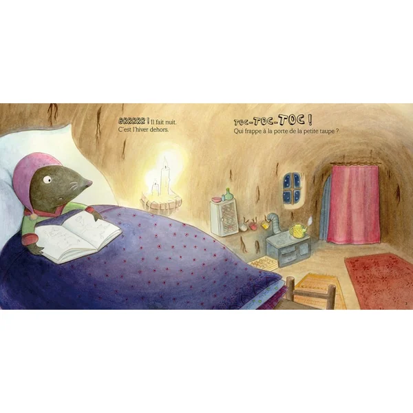 Petite taupe est tranquillement installée chez elle, bien au chaud, lorsque soudain,… toc, toc, toc, qui frappe à la porte ?