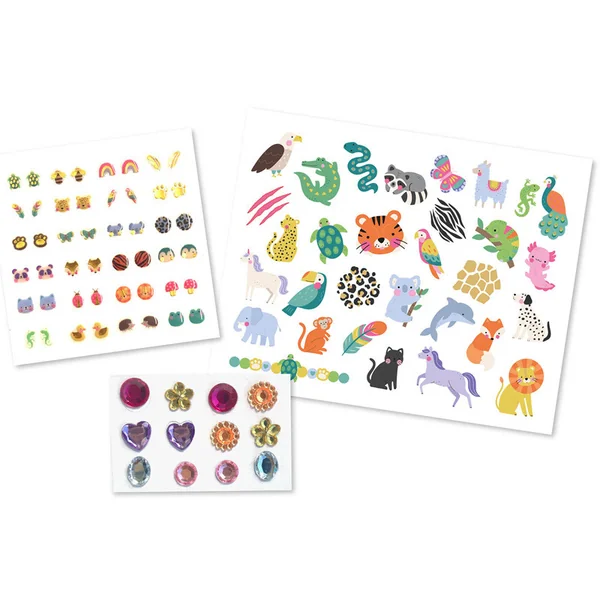 Une pochette qui propose : des strass de visage, des tattoos et des boucles d’oreilles autocollantes qui brillent !