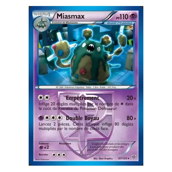 Découvrez Miasmax (pls067), une carte Pokémon de l’extension Tempête Plasma, provenant du bloc Noir & Blanc. Idéale pour compléter votre collection, cette carte Rare plaira autant aux collectionneurs qu’aux joueurs.