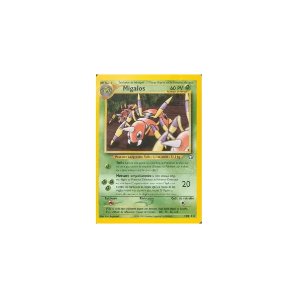 Découvrez Migalos (ng027), une carte Pokémon de l’extension Neo Genesis, provenant du bloc Wizards. Idéale pour compléter votre collection, cette carte Peu Commune plaira autant aux collectionneurs qu’aux joueurs.