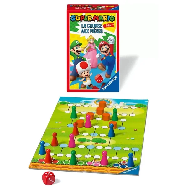Mario, Luigi, Peach ou Toad … Qui atteindra le château le premier ? Mais attention, quelques surprises vous attendent en chemin : des obstacles bloquent le passage et vos adversaires peuvent vous renvoyer au début. Il vous faudra être malin et avoir un peu de chance au dé pour remporter cette course pleine de rebondissements !