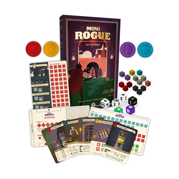 Dans Mini Rogue – Le Conseil, incarnez une aventurière ou un aventurier qui arrive dans une cité damnée, perdue aux mains d’un régent consumé par le pouvoir et de son conseil, qui orchestre de sombres manipulations dans l’ombre.