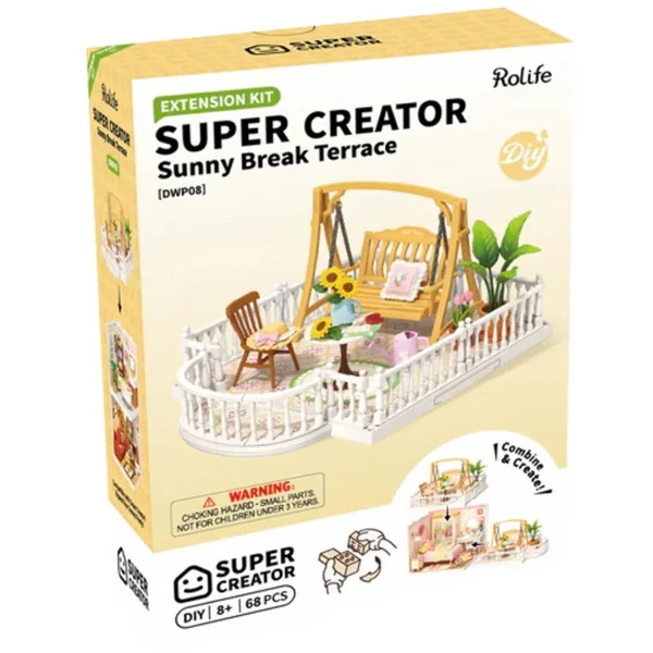 Le pack d’extension Terrasse est conçu pour s’intégrer à vos pièces Rolife Super Creator. Il suffit de l’emboîter pour créer un balcon accueillant ou un charmant coin café. Que vous rêviez d’un endroit ensoleillé pour vous détendre ou d’un espace stylé pour passer du temps ensemble, ce pack vous permet de recréer votre style de vie en miniature.