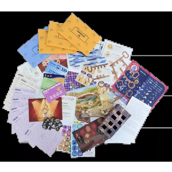 Finders Keypers propose cinq chapitres de puzzles fantaisistes et magnifiquement illustrés. Les éléments comprennent un assortiment d’entrées de journal, de déclarations de témoins et de documents, accompagnés d’une multitude de bricoles.