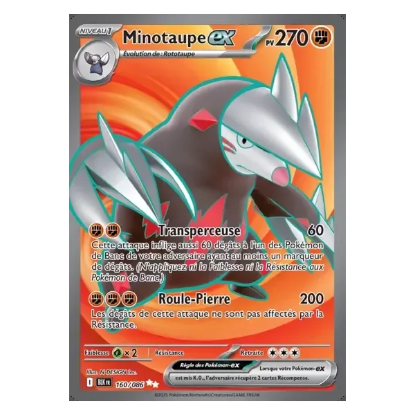 Découvrez Minotaupe (blk160), une carte Pokémon de l’extension Foudre Noire, provenant du bloc Écarlate & Violet. Idéale pour compléter votre collection, cette carte Ultra Rare plaira autant aux collectionneurs qu’aux joueurs.