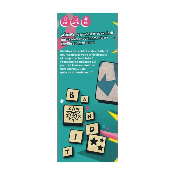 Mixmo est un jeu accessible, convivial et stimulant, qui plaira aux amateurs de jeux de lettres comme aux novices. Mixmo est de retour dans un pack et un format renouvelés, parfaits pour se retrouver entre amis pour un moment amusant !