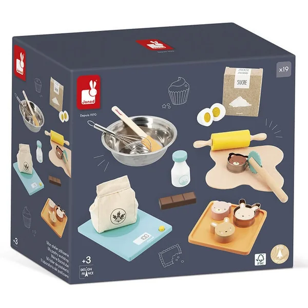 Pour les petits gourmands qui adorent jouer à la dinette, rien de mieux que cet ensemble d’accessoires en bois pour pâtisser comme les grands ! Dans ce Petit Atelier, on retrouve tout le nécessaire pour laisser parler sa créativité et s’imaginer en chef pâtissier reconnu !