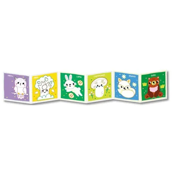 Ce livre accordéon grand format se déplie recto verso : d’un côté 6 grands dessins à peindre avec un pinceau magique à l’eau et de l’autre côté un imagier joyeux et coloré, pour découvrir de nouveaux mots de vocabulaire. Déplié, ce joli leporello fait une belle décoration dans la chambre de l’enfant. FAQ