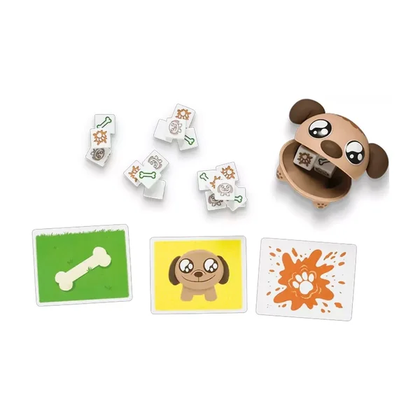 Chaque joueur commence avec le même nombre de dés. Mélangez-les dans le Doggy Shaker, puis révélez vos résultats pour tenter de vous débarrasser de vos dés avant tout le monde.