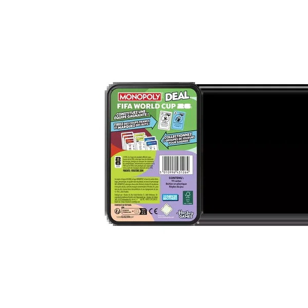 Monopoly Deal Fifa World Cup 2026 est un jeu de société de stratégie familial jouable de 2 à 5 joueurs, dès 8 ans pour des parties d’environ 15 minutes, édité par Hasbro.