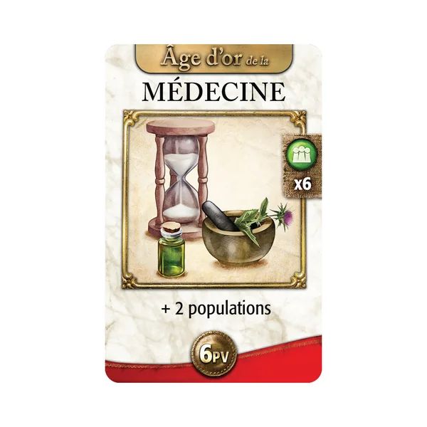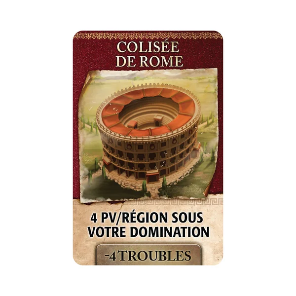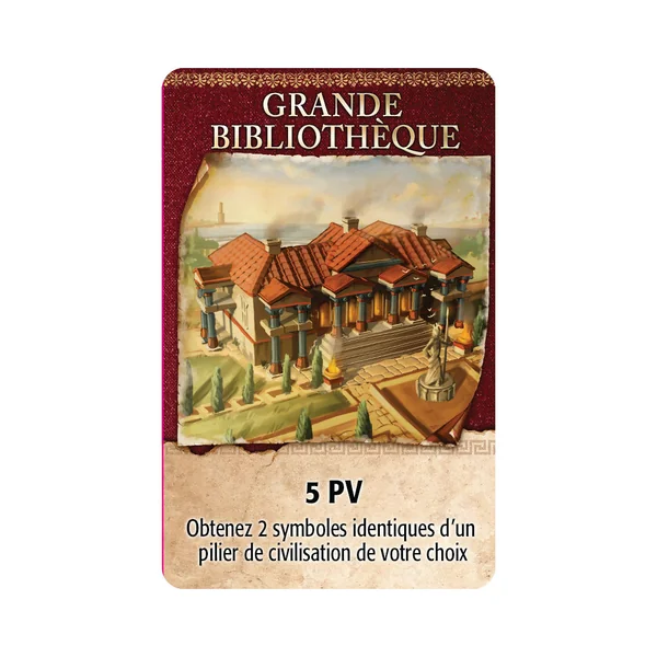 Au fur et à mesure que le jeu progresse et que votre civilisation se développe, des cartes de score sont finalement révélées à partir des quatre paquets. Chaque fois qu’une carte de score est révélée, votre civilisation marquera des points pour chaque région que vous dominez avec vos villes, vos villages, vos merveilles et vos unités militaires. Après la révélation de la troisième carte de score, il y a un dernier tour, et le jeu se termine. Vous marquerez alors des points pour vos villes et villages, vos merveilles, projets, réalisations et âges d’or, ainsi que pour toutes vos cartes qui marquent des points pour les piliers uniques de votre civilisation.