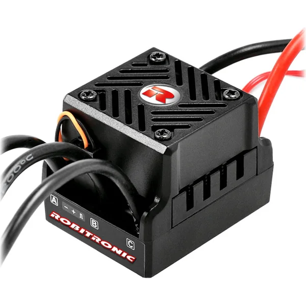 Régulateur électronique de vitesse Robitronic Razer G2 60A, pour voitures RC Onroad et Offroad à l’échelle 1:10. Alimentation par batterie 2-3S LiPo, ou 6-9 éléments NiMH. Conception étanche*. Radiateur intégré avec ventilateur. Large gamme de réglages avec le bouton SET ou via une carte de programmation.