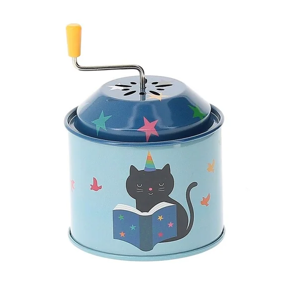 En tournant la manivelle, une mélodie se déclenche.