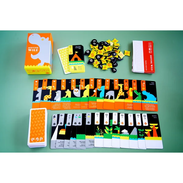 Dans Moving Wild, prenez une carte à la fois et passez les autres aux autres joueurs. Associez les bons animaux aux bons habitats et créez le parc animalier le plus harmonieux qui soit !