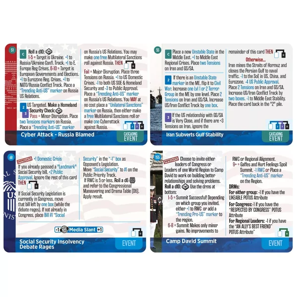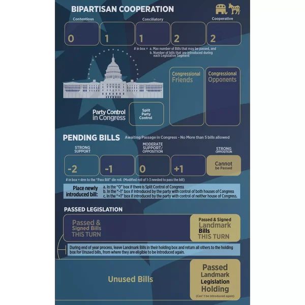Tout d’abord, plusieurs se sont demandé « Pourquoi une 2ème EDITION ? Pourquoi ne pas simplement réimprimer le jeu original dans une 2ème Impression pour le remettre en stock le plus rapidement possible ? » Eh bien, nous y avons réfléchi, mais après avoir consulté le document FAQ, et avec des dizaines de milliers de parties jouées au cours des derniers mois et autant de joueurs publiant leurs expériences en ligne (merci, j’adore lire vos histoires présidentielles !), nous avons vu certains endroits que nous pouvons resserrer pour aider les joueurs à mieux comprendre le jeu. Il y a quelques problèmes « d’équilibre » que je souhaite également aborder du côté de la conception. Nous profitons également de cette occasion pour aborder les errata de la première édition. Donc oui, nous aurions pu simplement réimprimer. Mais parce que nous voulons rendre le jeu le meilleur possible, nous avons décidé d’adopter l’approche consistant à « corriger les bugs et également apporter aux joueurs des améliorations de jeu », ce qui signifie que nous allons faire une 2e édition à part entière.