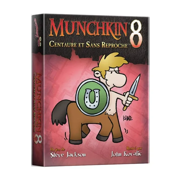 Munchkin 8 : Centaure Et Sans Reproche est une extension pour Munchkin, un jeu de combinaison et de gestion de main, dès 10 ans, de 3 à 6 joueurs, pour des parties de 60 minutes environ.