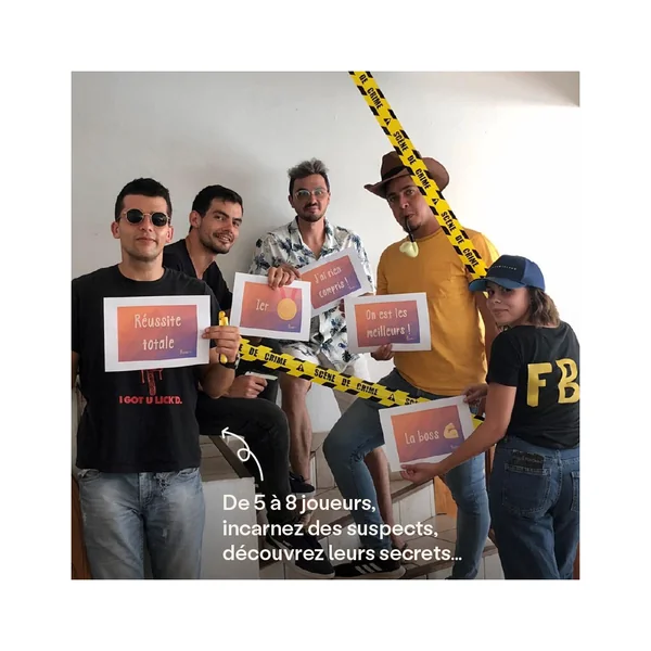 À la fin de la soirée, vous votez pour désigner le coupable. Le groupe gagne uniquement s’il tombe juste. - Prêts ? Installez la musique d’ambiance, servez un verre aux suspects, et plongez dans une soirée d’enquête digne des studios hollywoodiens.