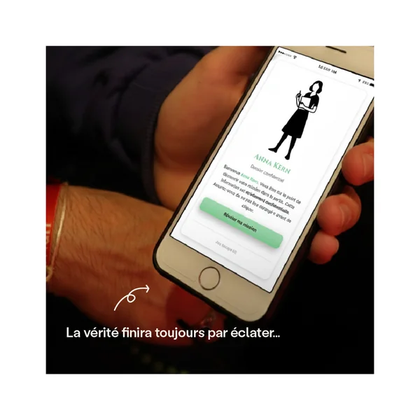 - Débloquez les révélations grâce aux QR codes : Événement A, Événement B… jusqu’au moment tant attendu de la résolution.