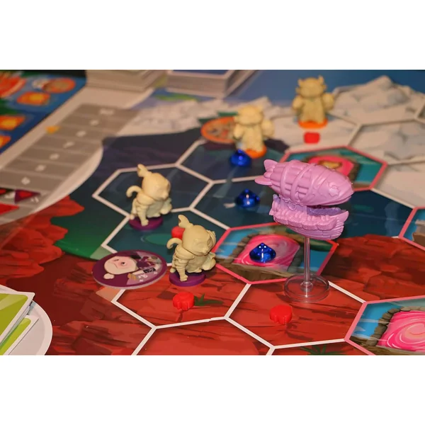 My Little Scythe – Pie in the Skyest une extension du jeu My Little Scythe. C’est un jeu compétitif et familial. Vous y incarnez les représentants de l’un des royaumes animaux du Monde de Pomme. Grâce à cette extension, vous serez aidé dans votre course aux trophées par le légendaire dirigeable Kai. Il vous offrira un soutien aérien important, mais attention, vous le partagez avec tous les autres royaumes ! Découvrez de nouvelles quêtes, une nouvelle façon d’effectuer vos recherches et surtout les 4 nouveaux fureteurs !