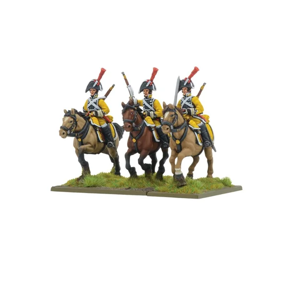 Dans leurs uniformes jaune citron surmontés de bicornes à plumes, les dragons espagnols sont imposants sur le champ de bataille. Équipés chacun d`une longue épée droite, d`une paire de pistolets et d`un mousquet court, ils constituent une excellente unité de cavalerie polyvalente dans les jeux de « Black Powder », que ce soit pour affronter les Français seuls ou au sein d`une force alliée !