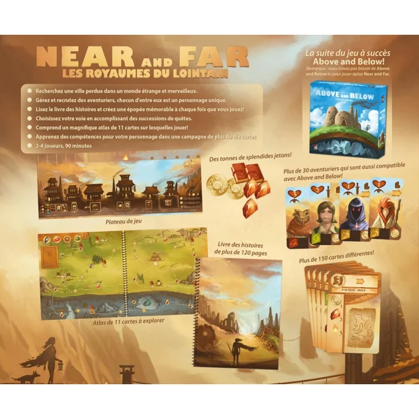 Near and Far est la suite du jeu Above and Below. Il comprend un livre d’histoires, un atlas de 11 mappemondes illustrés avec des quêtes, ainsi que 4 personnages jouables avec leur propre personnalité et leurs propres motivations. Chaque chapitre du livre d’histoires correspond à sa propre mappemonde et est rempli d’aventures uniques. Répondez à l’appel de l’aventure et commencez votre voyage.